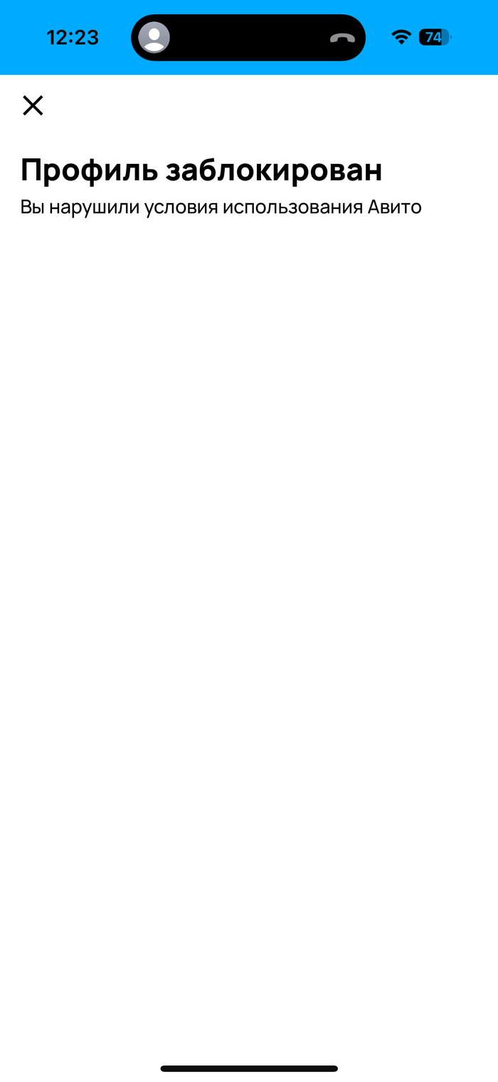 Неизвестная причина блокировки Авито Аккаунта