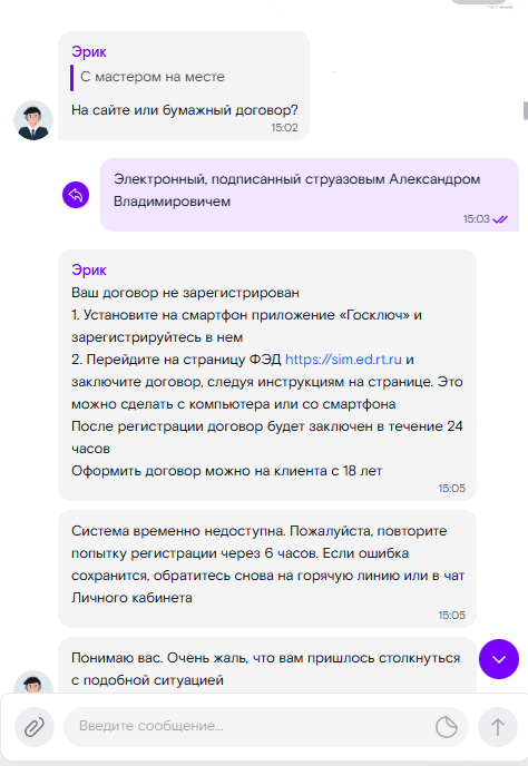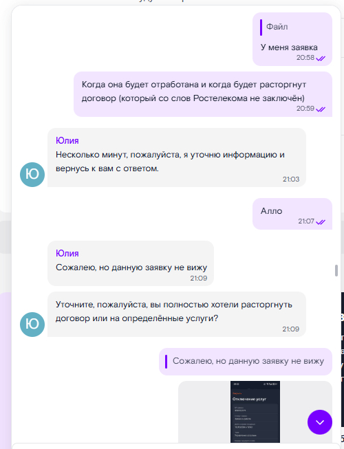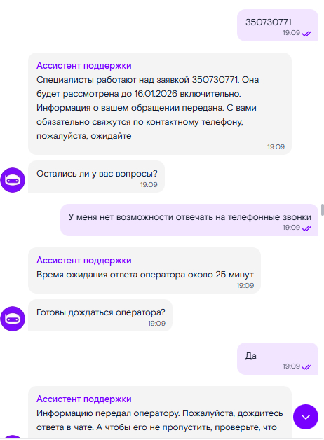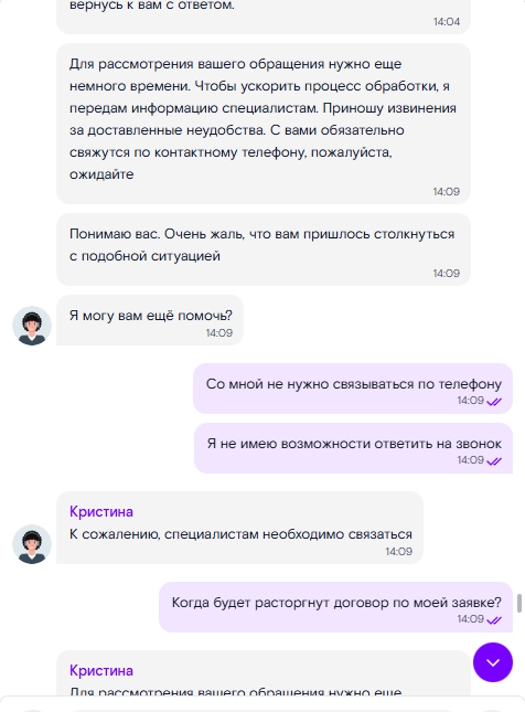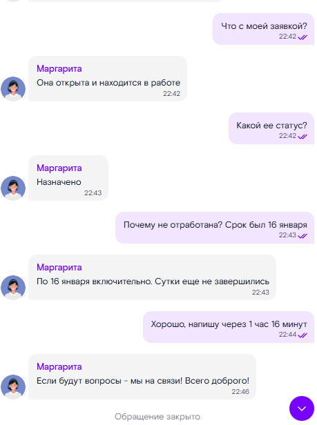 Когда вышел срок по заявке пишу им снова: "Чо там по заявке?" "А ничего, её нет" и закрывает чат