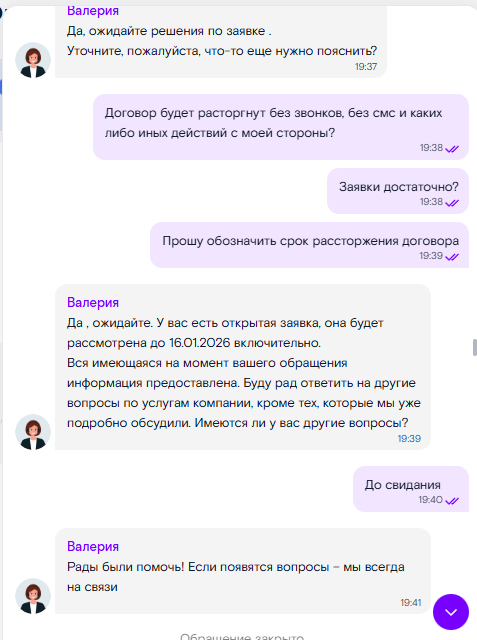 Сегодня смотрю статус и вижу, что заявка исполнена. Не веря своему щастью решил уточнить, расторгнут ли договор.