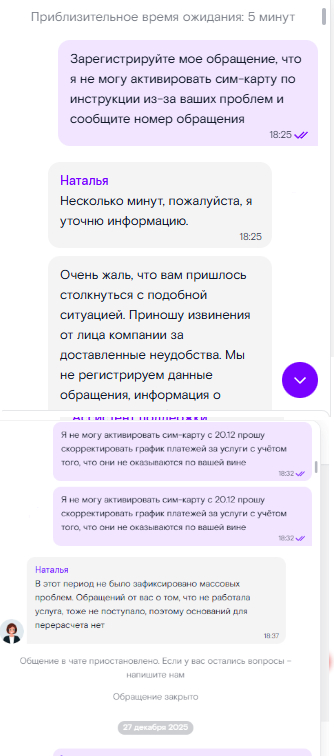 Ну ок, бывает. Время щас такое. И продолжаю раз в день пробовать активировать симку. Не получается. Спустя неделю оять пишу в техподдрежку