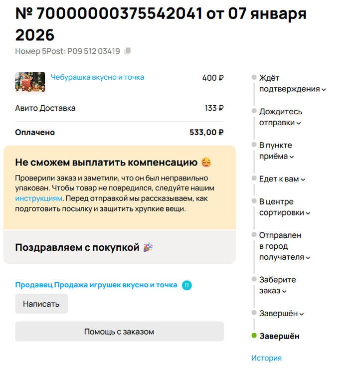 Без задней мысли, поскольку я на @Avito делаю часто заказы, и без каких-нибудь проблем всегда получал то, что заказывал, оформил и оплатил доставку, выбрав пункт получения 5post в Пятёрочке рядом с домом, и начал ждать товар, чтобы порадовать жену и исполнить её желание собрать всю коллекцию фигурок.