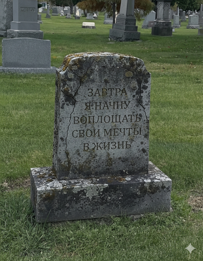 «Завтра» – удобная ловушка. В ней нет риска и ответственности. Там всё возможно, потому что ничего не нужно делать сегодня. И именно поэтому в этом «завтра» похоронено больше амбиций, чем на любом реальном кладбище.