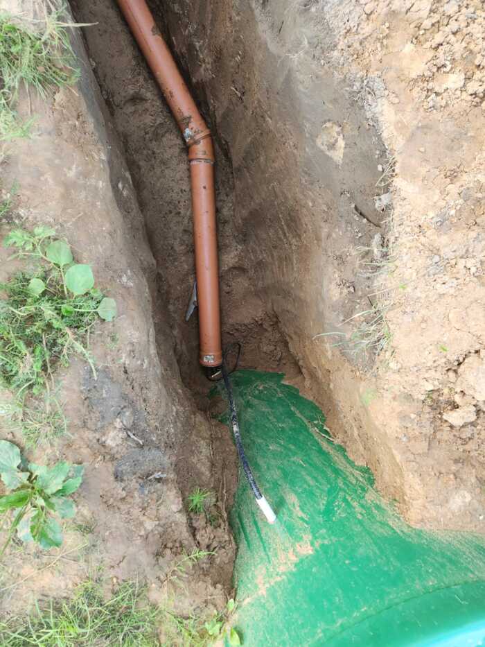 Есть у меня на участке кессон на расстоянии от дома в 26 метров. От него до дома кессонщики оставили ПНД32 трубу и сказали, что они и рады бы прокопать траншею за 4000руб/метр, но им некогда и хорошего вам дня.