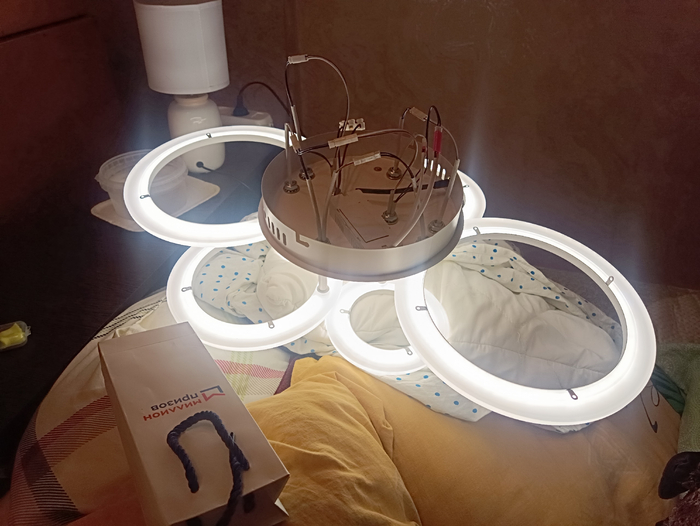 В электрике я - ноль (или фаза, не важно, всё равно не в теме). Поэтому сборку люстры доверяю парню. Моя задача - подавать детали и не ронять симпатичные кружочки (мама, если ты это читаешь, то нет, не роняла).