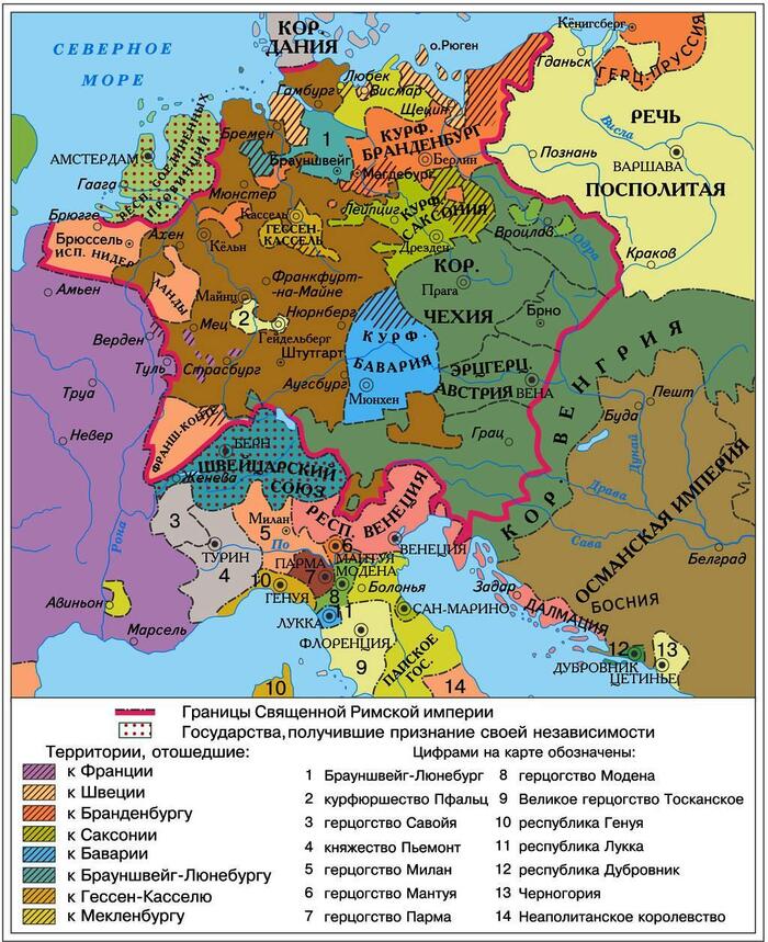Союзники держав-победительниц - германские княжества Бранденбург, Мекленбург-Шверин, Брауншвейг-Люнебург - расширили свои территории за счёт епископств и монастырей.