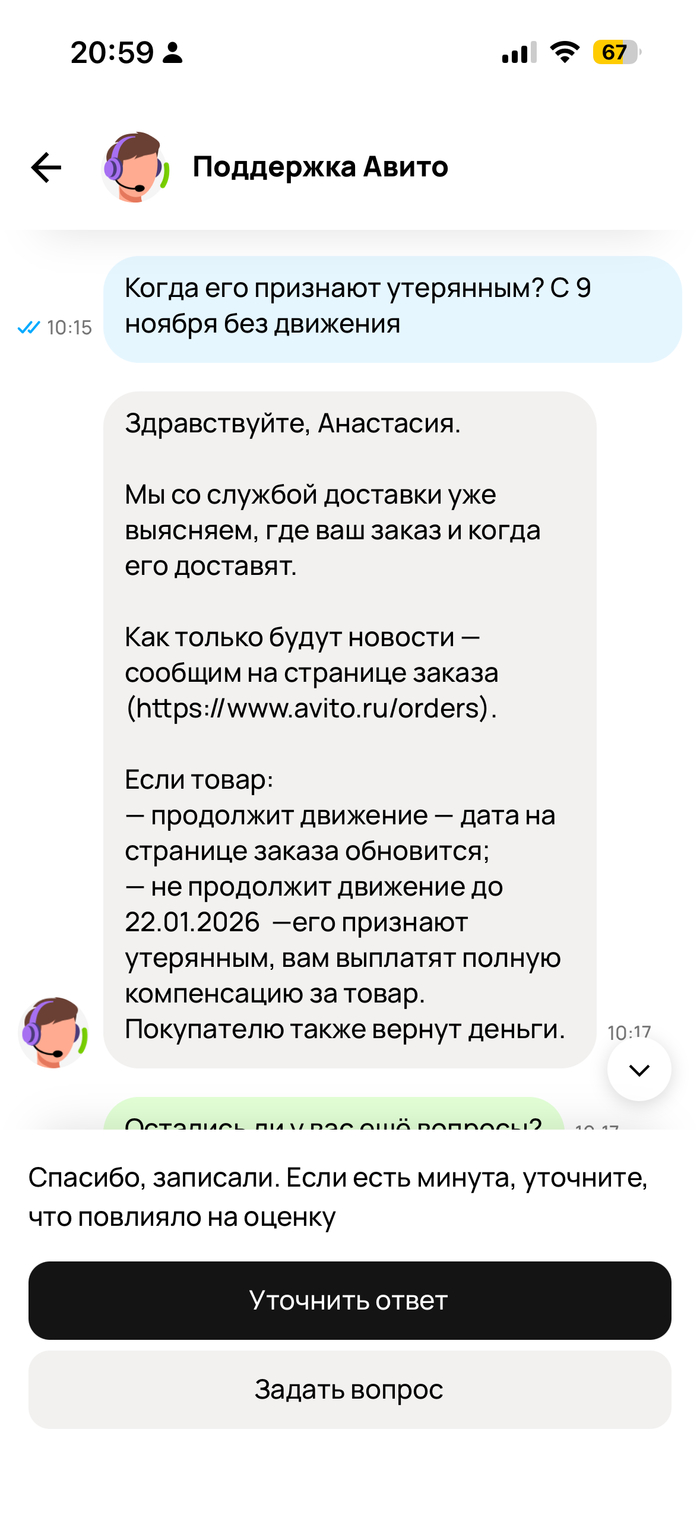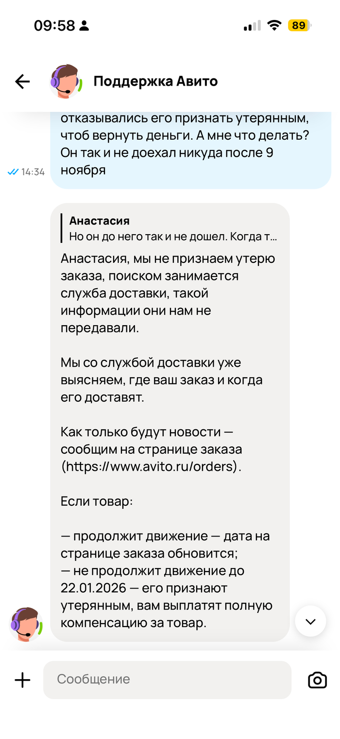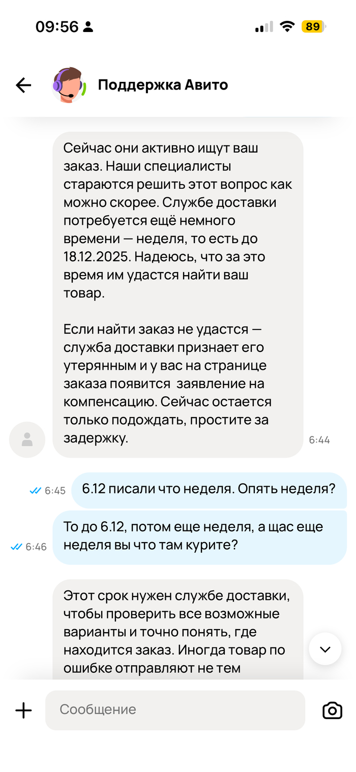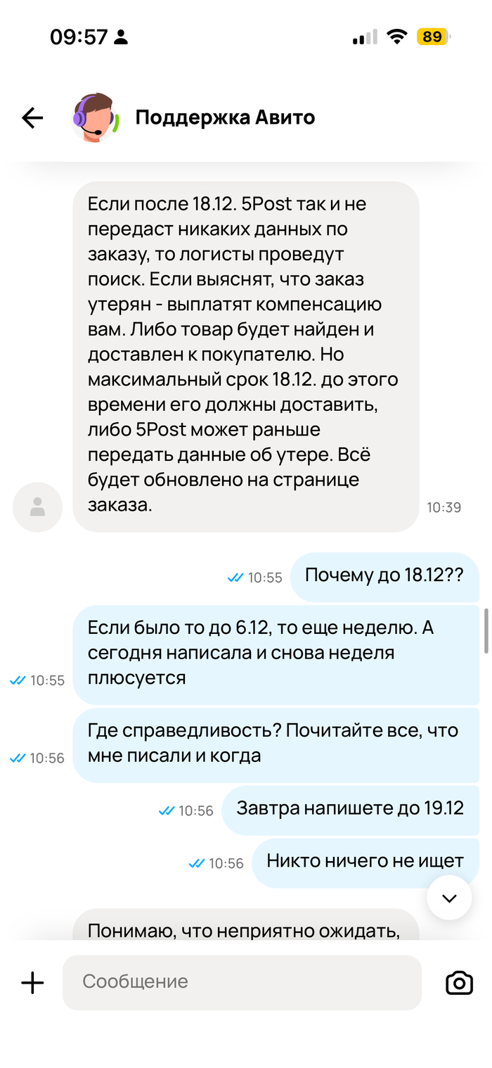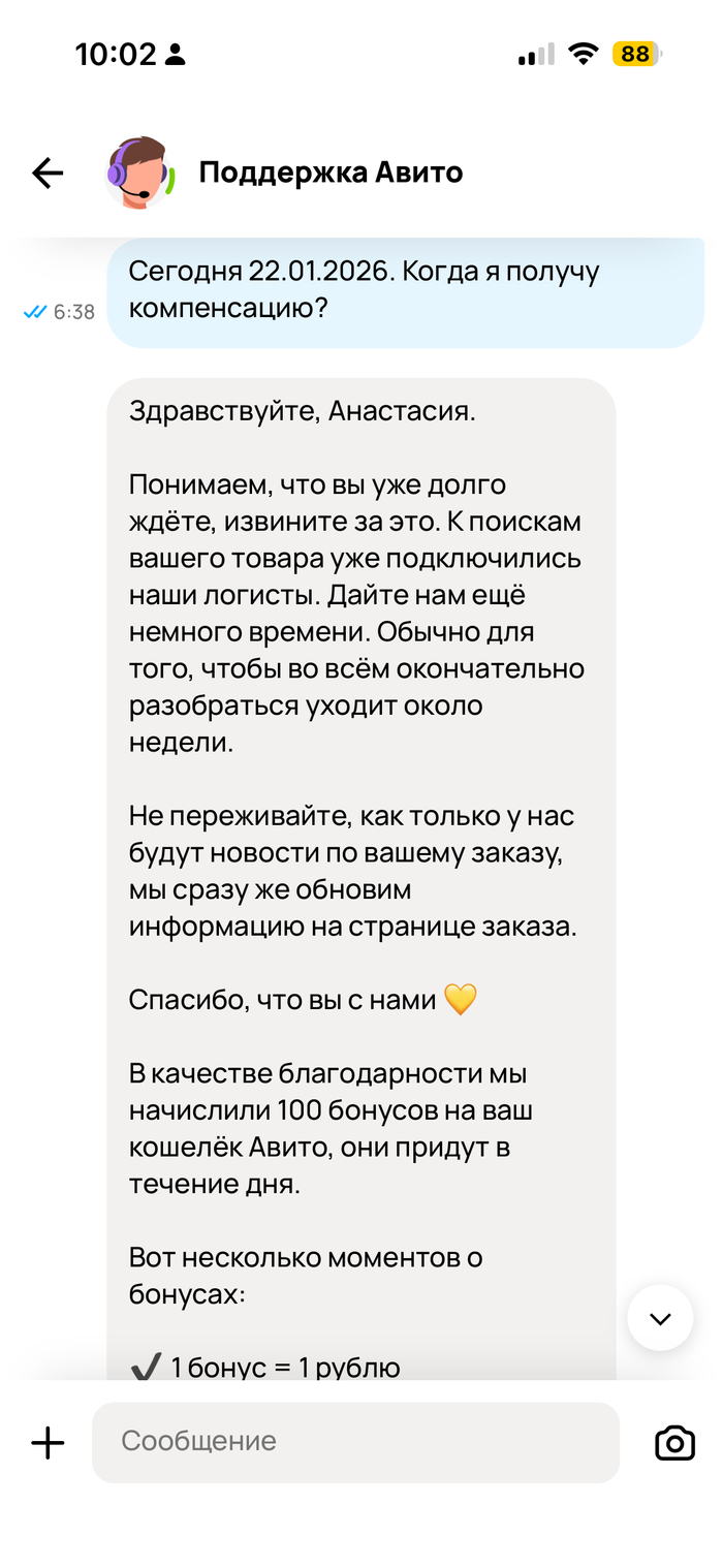 Служба поддержки Авито после каждого моего обращения шлет отписки и переносит сроки. То на неделю, то дольше. Последним сроком было 22.01.2026, но и в этот день чуда не произошло. Мне снова прислали отписки и сообщили, что сроков вообще не установлено. Требую разобраться с этим вопросом и выплатить мне компенсацию. Никто у них от за что не отвечает. Три месяца @Avito меня дурят. @5post также переводит стрелки на @Avito. Номер заказа P000382764428. @Avito @AvitoHelp, имейте совесть! @Avito.help
