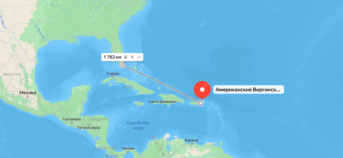 Таким образом остров Эпштейна входит в те самые Виргинские острова, купленные США. Кстати находится он довольно далеко от материка. До Майями аж 1762 километра.