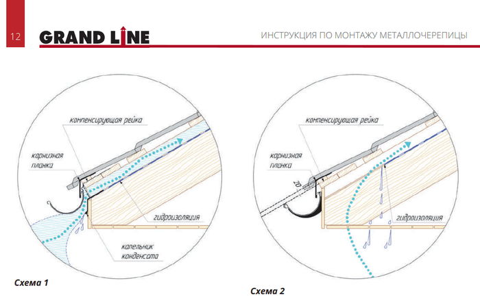 Тут, конечно, ещё не всё потеряно и можно разрезать гидрозащиту под свесом, чтобы вода вытекала по схеме 2, на софиты подшивки свесов. Не идеально, но работать будет.