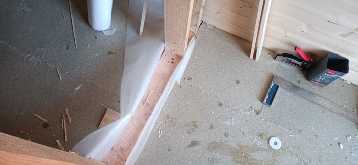 Пароизоляционный контур, который является основой энергоэффективности и долговечности каркасного строения, отсутствовал. Т.к. строители не выполнили закладные пароизоляции. То есть, не подсунули её под перегородки, когда возводили их. В результате, пол пароизолирован секционно, а значит, по всему периметру перегородок и дверных проёмов будет дуть.
