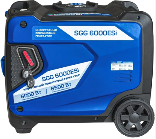 Характеристики: Номинальная/максимальная мощность: 6 / 6.5 кВт, тип: инверторный, напряжение: 230 В, объем бака: 13.5 л, уровень шума: 58 дБ, запуск: ручной/электростартер + пульт ДУ, вес: 57.5 кг.