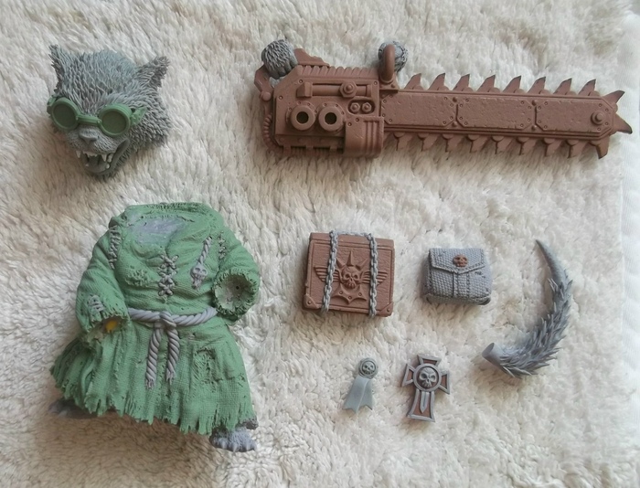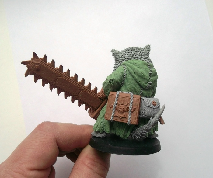 Котик у нас с посохом, облачен в стильный балахон и подпоясан не менее стильной цепью, для отыгрыша Астропата есть надежный и стильный защитный щиток