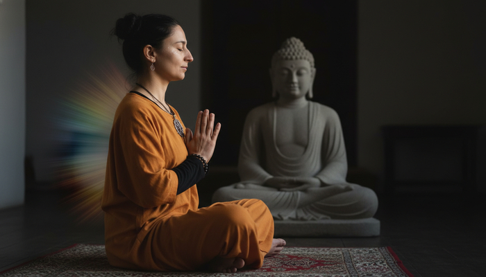 7 духовных промтов для йога-фотосессии девушки: мантры, Будда, Ганеша, мягкая женственность и реалистичные детали. Часть2