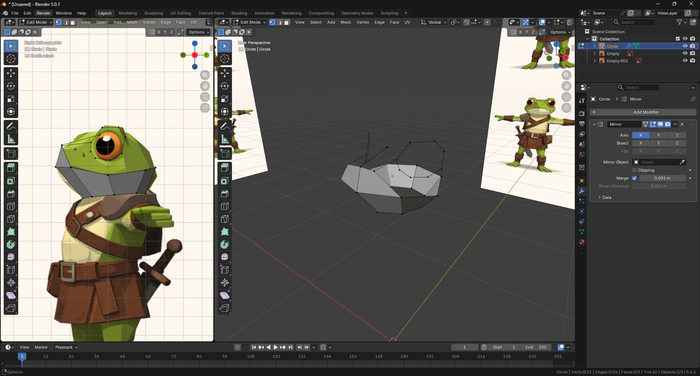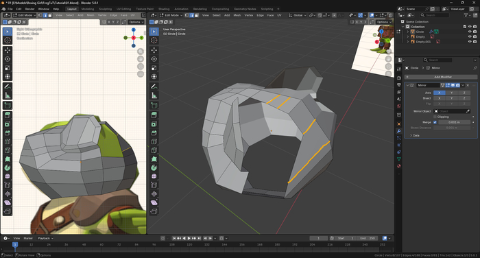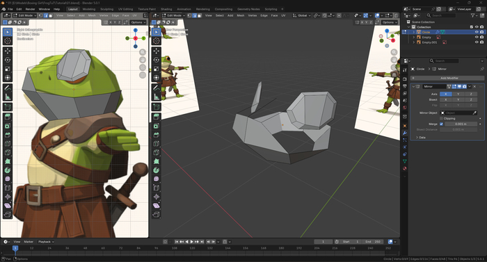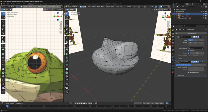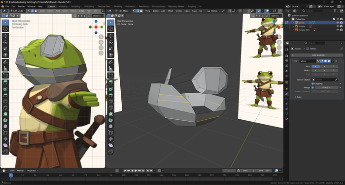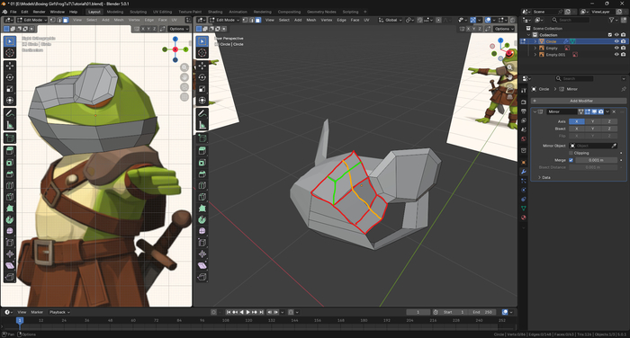 В самом начале мы научились создавать крутые штуки. В части первой познакомились с базовым изменением полигональной сетки: перемещением вершин и граней, инструментами разделения сетки и выдавливания.
