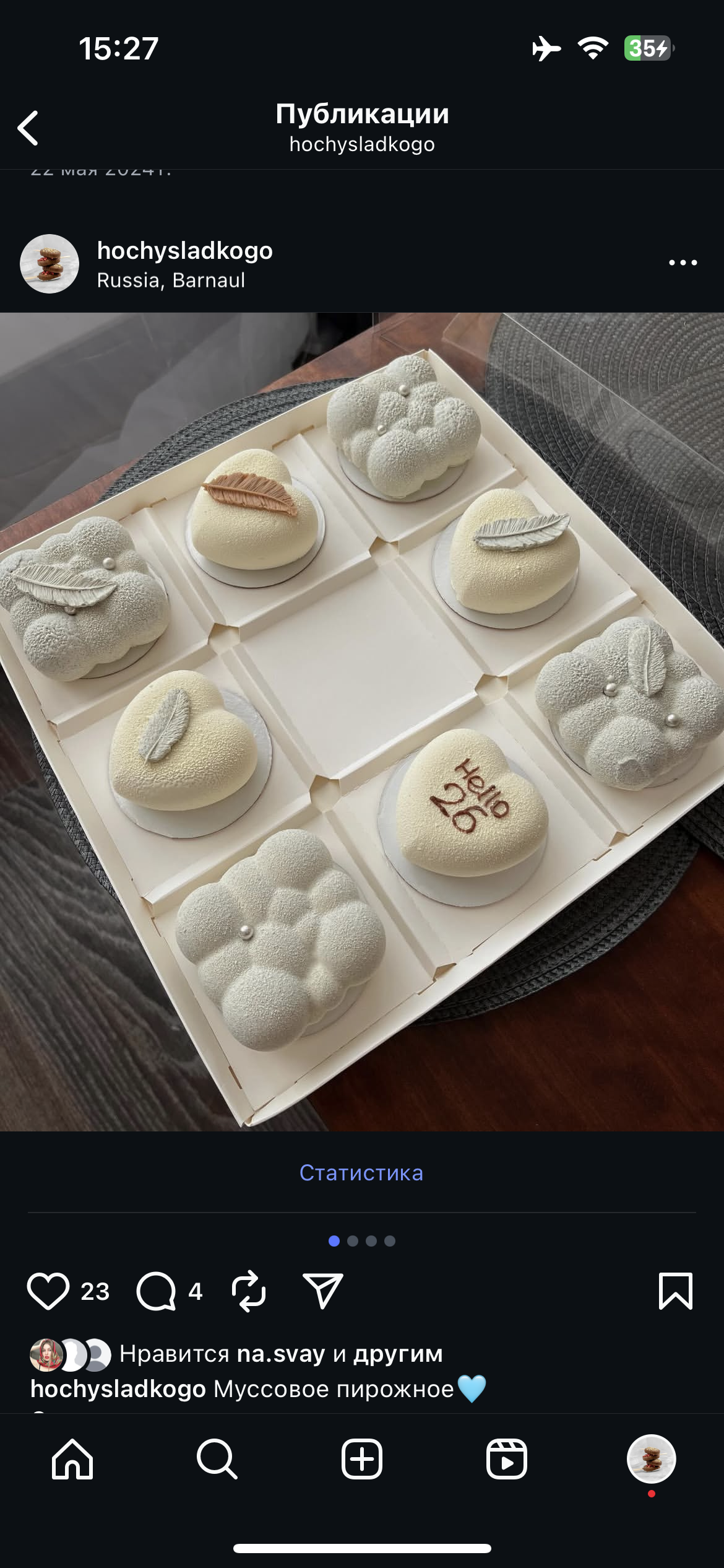 В Барнауле мы с подружкой делали пирожные на заказ, и у нас, по-моему мнению, неплохо получалось. Настя, приветик! Понятно, что в «полевых» условиях, муссовые пирожные я не готовлю, но иногда вдохновение находит, и я импровизирую с тем, что есть.