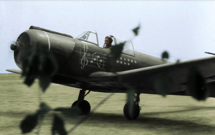 Як-11 в фильме «Нормандия-Неман». Для кино самолеты переделали в одноместные