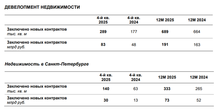 🏠 Строительная компания ЛСР представила операционные результаты за IV квартал 2025 г. После прорывного III кв. (показатели заключённых контрактов в кв.м. и в млрд ₽ увеличились, подорожание квадратного метра продолжилось), не было сомнений, что во IV кв. тенденция продолжится. Помогли застройщику рассрочки (стоимость квадратного метра показывает рост: III кв. 2025 г. — 267,1₽ тыс. vs. IV кв. 2025 г. — 287,2₽ тыс.), смягчение ДКП (снижение ключевой ставки до 16%), также спрос поддержали новости об ужесточении условий Семейной ипотеки в 2026 году (количество льготных кредитов будет ограничено одним на семью). Давайте рассмотрим результаты IV квартала: