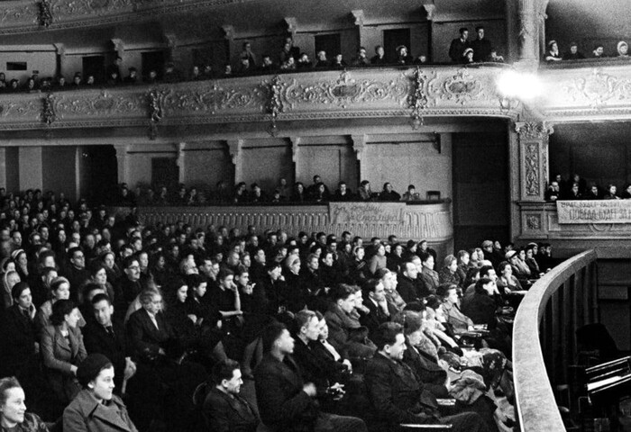 Театральная жизнь тоже продолжалась! Театр Музкомедии – единственный коллектив, который работал в Ленинграде все дни блокады. За годы блокады было осуществлено 15 премьер и возобновлений ранее поставленных спектаклей. Театр посетили 1 миллион 300 тысяч зрителей.