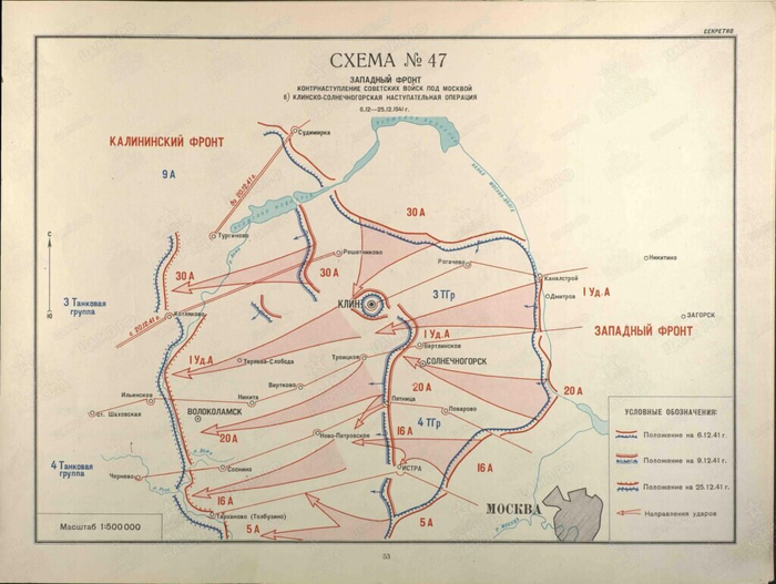 Здравствуйте Уважаемые читатели! В первых числах декабря 1941 противника от Москвы отделяло менее 20 километров, и понятно, что союзники не сильно верили в нашу победу, да и враг не верил в грядущую для него катастрофу. На сообщение от разведки о шевелениях в нашем тылу в Берлине глаза предпочли закрыть и готовились к наступлению 7 декабря. А на сутки раньше в наступление перешли наши войска, и наступательная расстановка войск на руку врагу не играла точно. В ночь на 6 декабря части 30-й армии Лелюшенко и 1-й ударной Кузнецова нанесли удар по немецкому выступу. Который словно копье был нацелен на Москву. В первый же день 30-я армия, прорвав фронт, уходит в прорыв на 30 километров. 1-я ударная наводит переправы через канал имени Москвы, и так же углубляется в оборону врага на 30 километров. И это при том, что противник превосходил в танках в 1.5 раза, в артиллерии в 1.2 раза, но уступал в пехоте в 1.6.