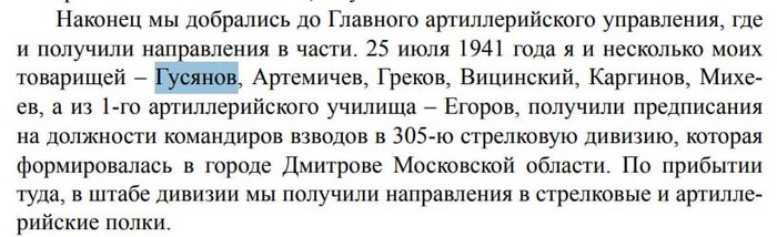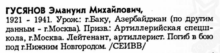 Из книги: упомянут лейтенант-артиллерист Эмануил Михайлович Гусянов, выпускник училища, один из первых коммунистов на курсе.