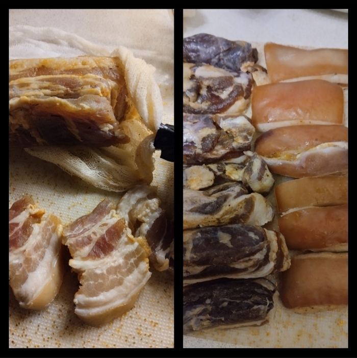 Кусок номер 2 (102 грамма (усыхание -86 грамм)) завялился идеально. Температура на подоконнике была от 12 до 17°С. Влажность от 35 до 45%.
