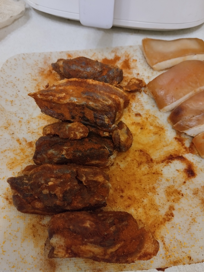 Мясо внутри пористое. Пришлось их порезать на тонкие кусочки, дать довялиться и использовать по назначению.
