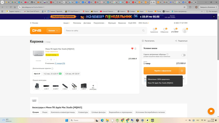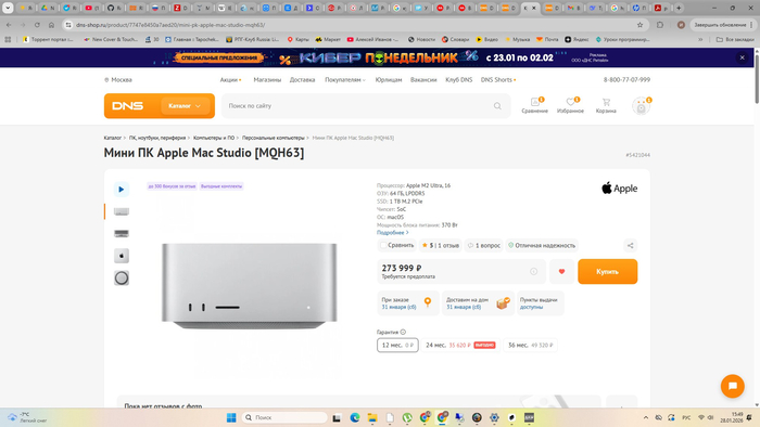 Этот самый Mac Studio (арт. 5421044) доступен для заказа с доставкой 31 января.