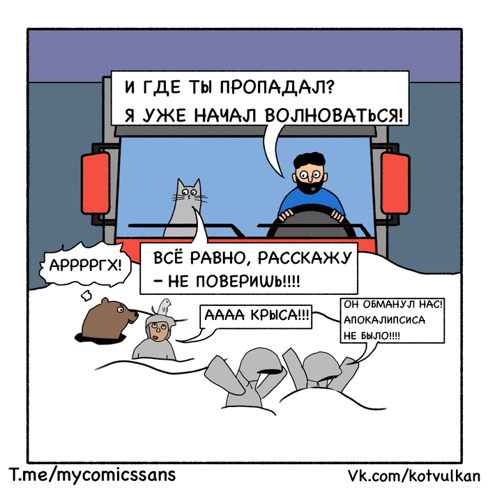 Кот Вулкан и дальнобой едут далеко-далеко. В дороге дальнобоя развлекает очень эрудированный и умный кот Вулкан.