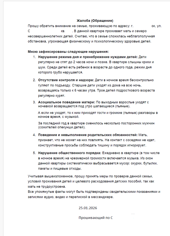 25 января 2026 оформил и направил заявление в полицию через сайт МВД, адресовав его в том числе в коменатрия отразил что бы отправили в подразделение по делам несовершеннолетних (ПДН)
