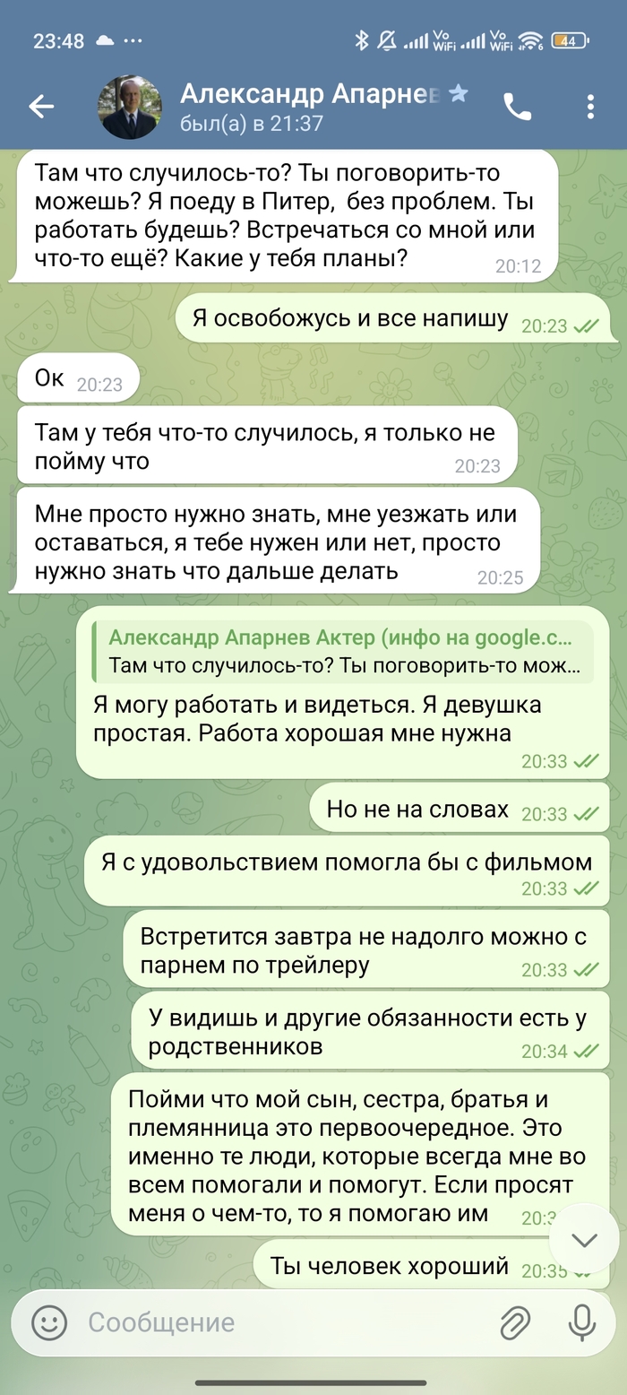 Хочу рассказать вам свою историю — может, она убережёт кого‑то от ошибок. Речь пойдёт об Александре Апартневе. Он представился актёром и продюсером, и поначалу всё выглядело… ну, почти как в кино. Но реальность оказалась совсем другой.