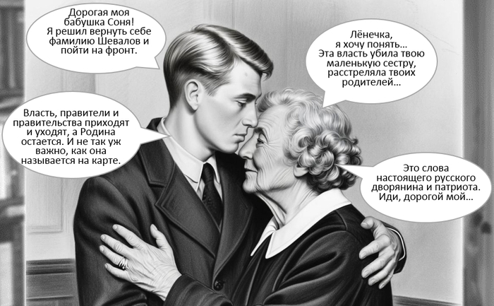 За неделю Леонид сменил фамилию на всех своих документах! Это было не так просто, но военная неразбериха и упоминание влиятельного мужа тёти Риты сделали своё дело. Получив паспорт на имя Шевалова Леонида Львовича, он с облегчением осознал, что всегда считал себя именно Шеваловым! Завершив бумажные дела, Леонид отправился в военкомат.