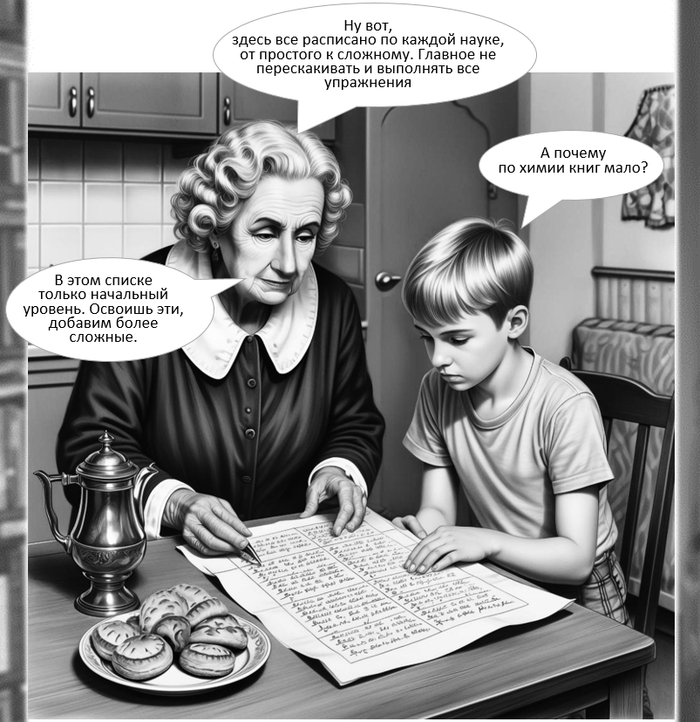 А потом появился один из бывших студентов старого профессора, который за чаем с пирогами, с шутками и прибаутками помогал мальчику согласовать добытые знания со школьной программой.