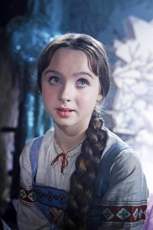 Глаза мне накрасили синими тенями, губы сделали ярко-алыми, а для зимних сцен создавали белоснежные ресницы. Роль инея играл клей, которым обычно клеили усы и бороды актёрам. До сих пор с ужасом вспоминаю, как сдирала его с ресниц».