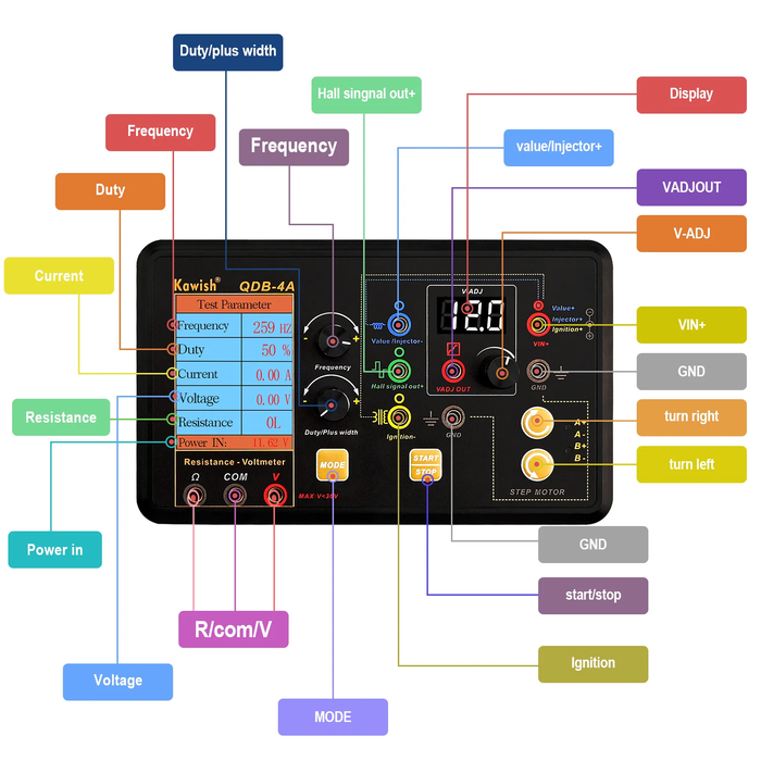 Тестер QDB-4A — это компактный и многофункциональный прибор, предназначенный для самостоятельной диагностики и тестирования автомобильных электромеханических компонентов. Данный прибор пригодится владельцам автомобилей, автомастерам и специалистам СТО, стремящимся оперативно выявлять неисправности без сложного дорогостоящего оборудования.