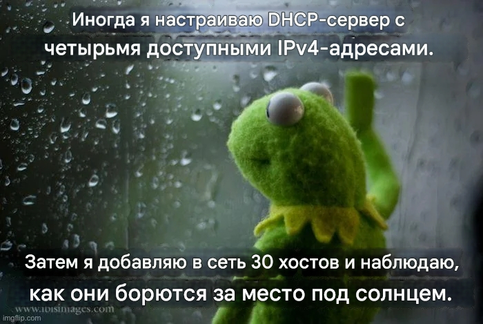 Иногда я чувствую себя не сисадмином, а кем-то, кто проводит жестокий социальный эксперимент. Я намеренно урезаю пул DHCP до 4 адресов, запускаю в сеть 30 голодных хостов и наливаю себе кофе.Я наблюдаю за моделью крушения цивилизации. Сначала идёт фаза паники, хосты начинают кричать широковещательным штормом. Это крик новорожденных в мире, где ресурсов на всех не хватит. Выживает не самый умный и не самый мощный. Выживает тот, у кого быстрее сетевой стек, кто агрессивнее спамит запросами.Четверо счастливчиков получают заветный IP. Теперь они новая элита, они мой сетевой золотой миллиард У них есть доступ к Интернетам, к общим папкам, к жизни. Но их счастье отравлено страхом. Время аренды... их Lease Time тикает. Они помнят, что их статус временный или стоит им уйти в ребут - их место займет кто-то другой, более голодный и быстрый.Остальные 26 маргиналов сваливаются в цифровое гетто 169.254.x.x. Они получают бесполезные APIPA-адреса. Они вроде бы существуют, лампочки мигают, но они отрезаны от большого мира. Они могут общаться только друг с другом в своей локальной безысходности, не имея возможности выйти за пределы своего болота.Но самое забавное в этой трагедии то, о чем не знают ни те, ни другие. В моей сети есть Статическая Аристократия.Мои нужные домашние устройства, которым я прописал IP вручную. Они не участвуют в этой крысиной беготне. Им плевать на суету с DHCP, они не участвуют в крысиных бегах за ресурс и с презрением наблюдают за возней динамических плебеев. Они выше правил, потому что их право на существование прописано в конфиге - в самой структуре мироздания сети.Они просто молча наблюдают с высоты своих статичных IP, как динамическая биомасса внизу рвет друг другу глотки за право получить доступ к шлюзу на следующие 60 минут.... но перед лицом обесточивания все пакеты равны. И тьма примет их всех.