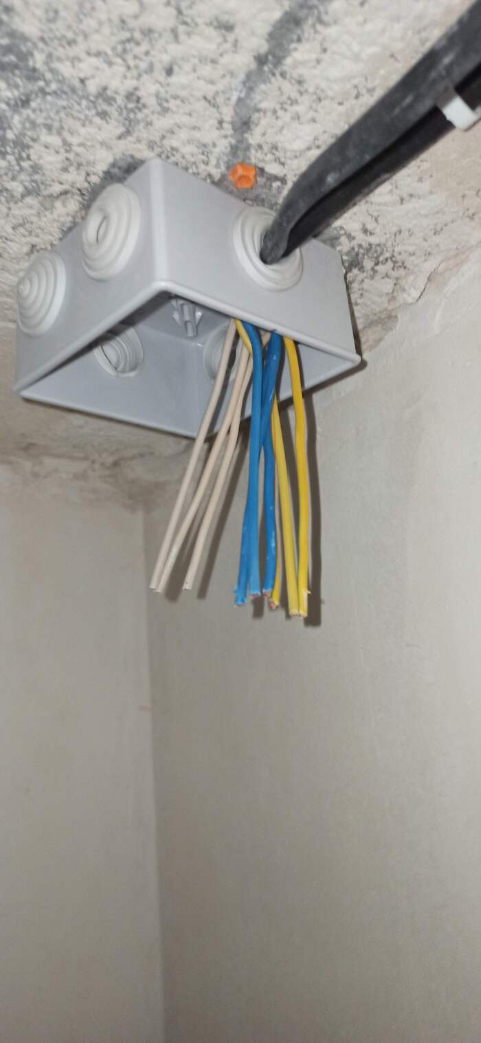 На настоящий момент все кабели проложены и заштукатурены, заканчиваю опресовывать кабели в распределительных коробках.