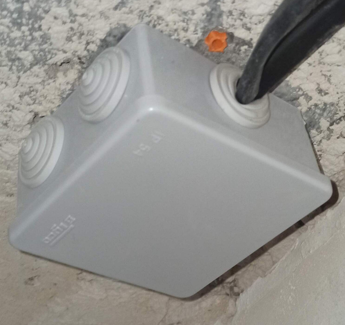 Ну а потом просто напросто прячем жилы в коробку и закрываем: