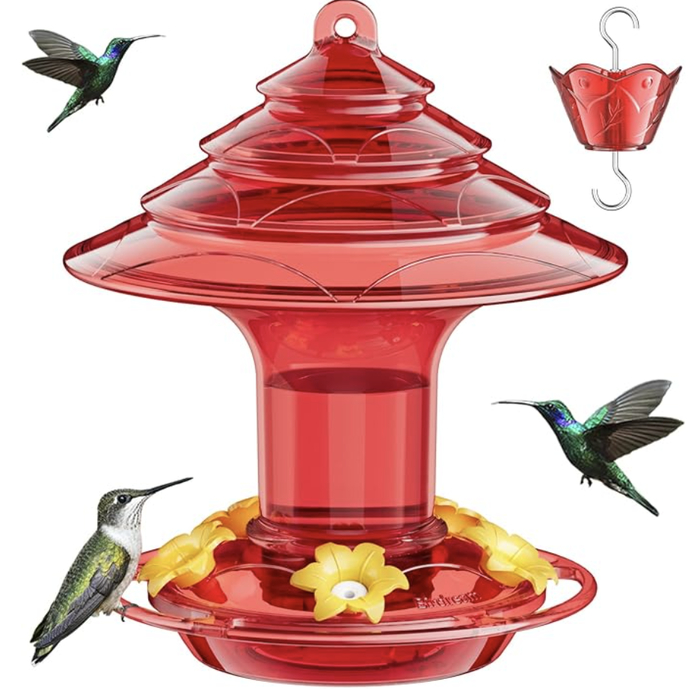 В моей локации обитают колибри, а еще у нас зимой бывает холодно, но эти черти не улетают куда теплее, а пытаются выживать. И вот что бы облегчить им зимние условия, осенью купил кормушку для колибри(см фото). За день они примерно выпивают 1см, но этот сантиметр воздуха располагается от желтых цветочков(нижняя часть) вниз, не доходя до дна пару тройку миллиметров. Затем они перестают пить (видимо не достают язычками), подлетают, суют клюв и сразу улетают. Раз в день надо подходить к кормушке и наклонять немного, тогда пузыри воздуха поднимаются, а жидкость опускается.. Так при очередной загрузке, я закинул внутрь трубочку(длина с самого низа до верху), предварительно наделав в ней отверстий. Но воздух отказывается подниматься, а жидкость соответсвенно опускаться.