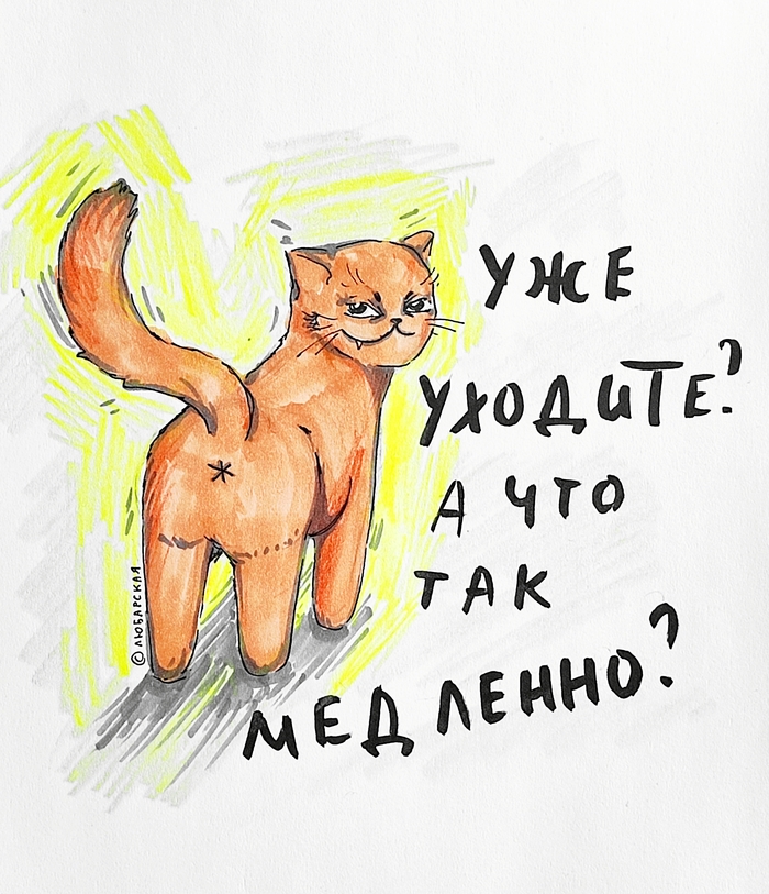 Вдогонку к предыдущему коту, указующему на дверь) *уходит делать стикер*