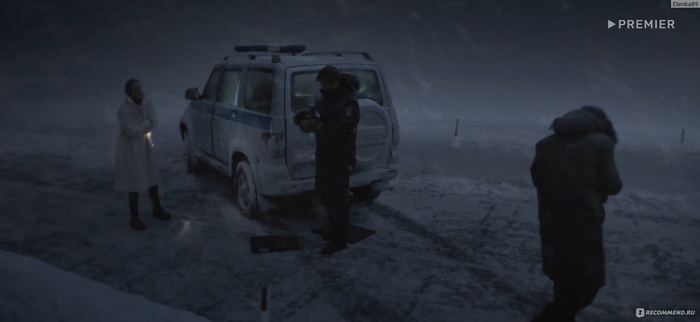 Трое в УАЗе, не считая органов: идеалистка, напарник‑полицейский и заложник ситуации катят в пургу, застревают, слетают с дороги, глохнут, почти задыхаются от выхлопных газов. А чтобы хоть как‑то оправдать поездку — мол, это судьбоносное решение, — в сценарии появляются ещё люди, которые застряли на этой дороге и, если бы не наши герои, они бы умерли.