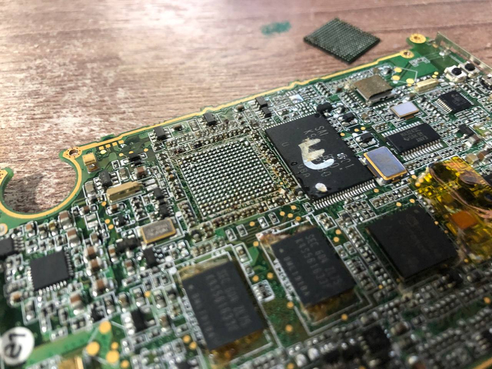 В процессе диагностики выяснилось, что эти КПК массово страдали отвалами видеочипа. Но народные умельцы не сдавались и "ремонтировали" устройства с помощью заливки суперклея под пузо вообще чипов на плате.