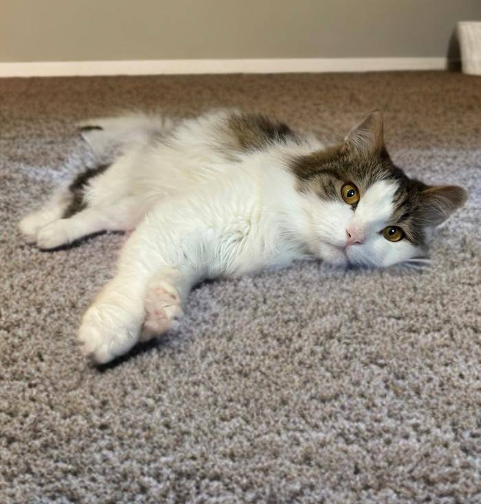 Батона нашли у подъезда, он просто сидел на одной точке и никуда не уходил. Совершенно чистый, аккуратный котейка с поникшим взглядом верно ждал, что за ним вернутся. Помнится, прошла соседка с собакой, которая на него гавкнула, а он лишь повел ухом и продолжил сидеть себе дальше. Он не шел в подвал, не увивался хвостиком за людьми, он просто сидел...