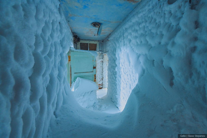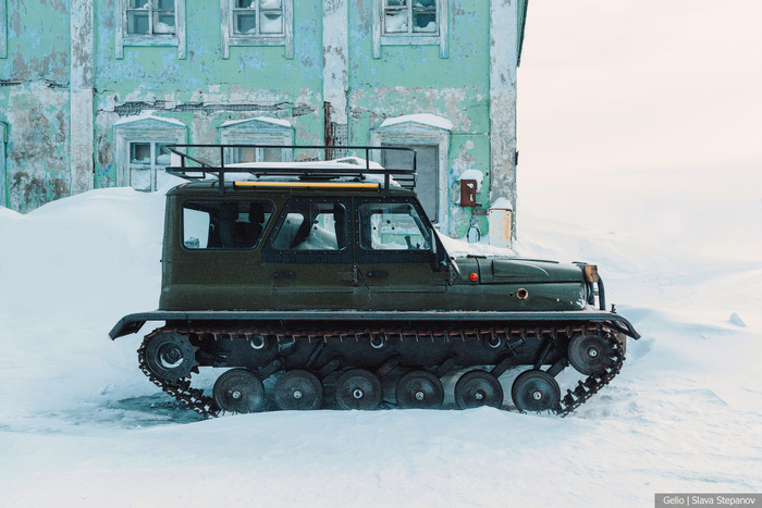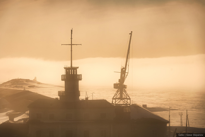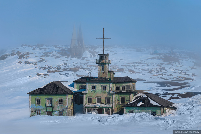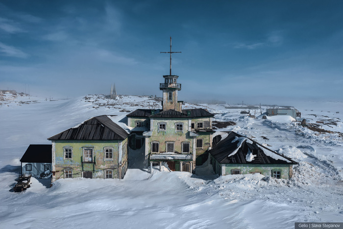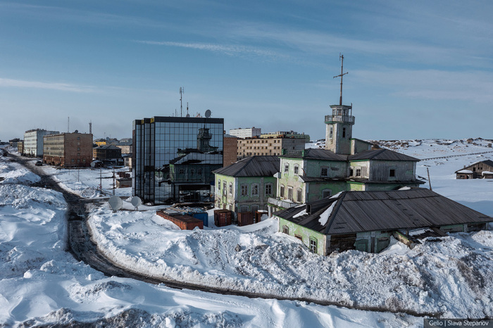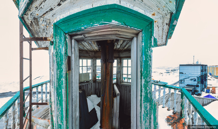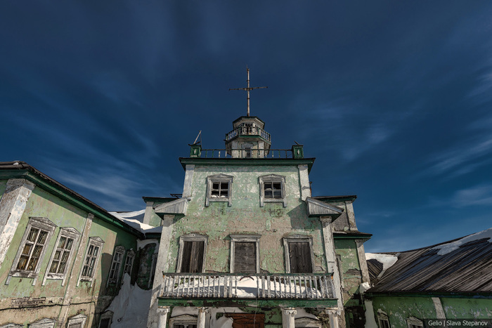 Бывшее здание управления морского порта в Диксоне — один из самых выразительных архитектурных объектов посёлка. Сейчас законсервировано, но в его облике хорошо читаются черты сталинского ампира. Точных данных о времени строительства не сохранилось: здание полностью деревянное, колонны с волютами и балюстрада второго этажа. Диксон расположен за Полярным кругом на побережье Карского моря и считается самым северным населённым пунктом России.