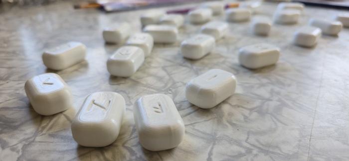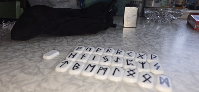 С новой катушки филамент запутался ночью, но когда нас это останавливало? По старой традиции руны на ветки нарезать можно и кидать куда попало...