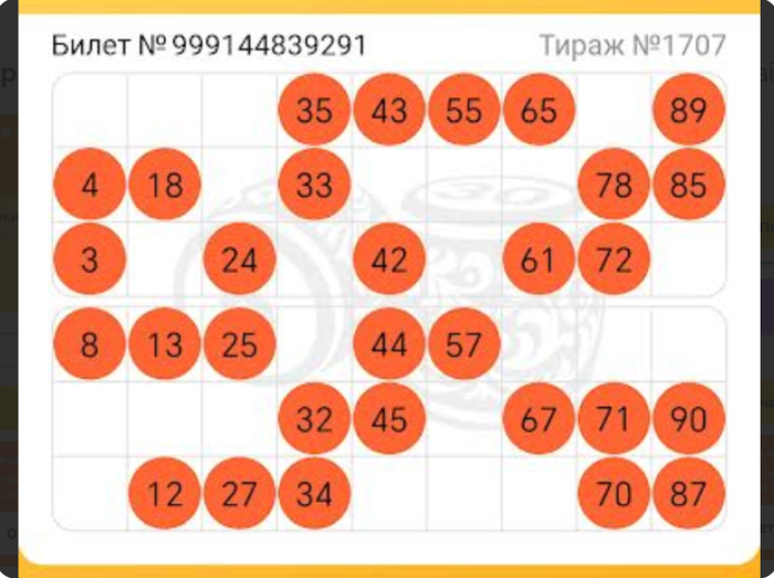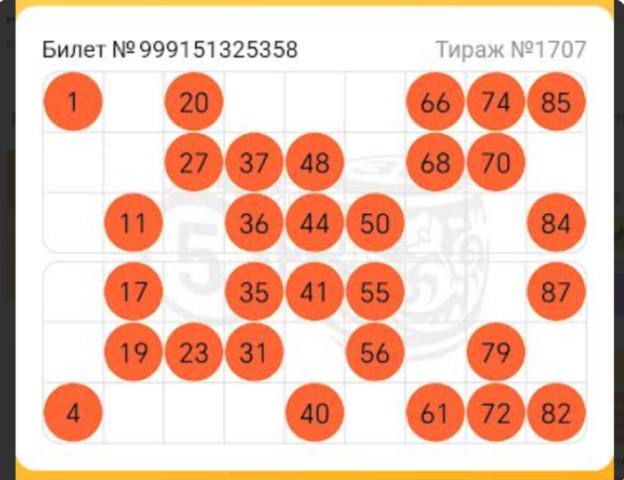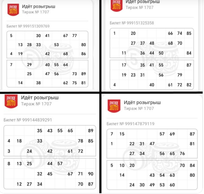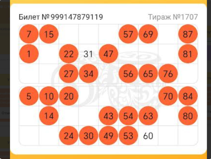Итак, когда розыгрыш подошел к концу, оказалось, что 2 из 4 билетов так и не заполнились до конца (номера 60 и 75 оказались в числе невыпавших):