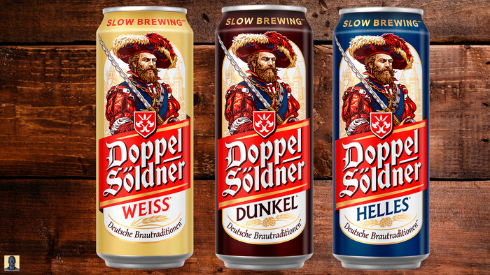 А известная всем «Лента» выводит на рынок пиво собственной торговой марки Doppelsöldner в алюминиевой банке. Это первый пенный напиток СТМ в такой таре, в прошлом году компания запустила в ассортимент марку Shtrassenberg в ПЭТ. Концепция и название разработаны с учетом углубленной экспертизы ритейлера в области продаж пива. В качестве героя был выбран один из самых брутальных образов эпохи Возрождения – наемный пехотинец Doppelsöldner. Новинка производится на мощностях пивоваренного завода «Суздальский пивовар». Линейка представлена тремя сортами: светлый лагер Helles, пшеничное нефильтрованное Weiss и темный лагер Dunkel. Оно уже появилось на полках магазинов «Лента», «Монетка» и «Вингараж». Цена - в пределах 90 рублей за 0,45L.
