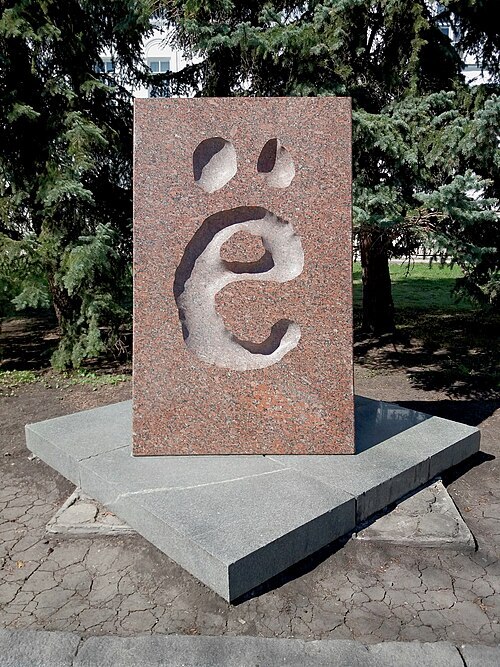 А на родине Карамзина, в Ульяновске, ей даже поставили памятник в виде треугольной призмы из красного гранита, 2 метра высотой, 3 тонны весом. Буква на нём - увеличенная копия той самой литеры из «Аонид», со всеми неровностями типографского оттиска 1797 года.