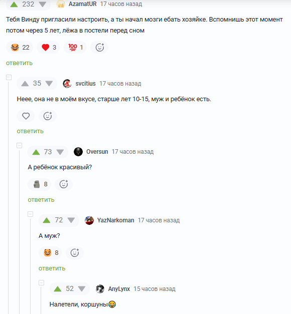 из этой темы, вы придаёте ей серьёзности. Ну какого мнения о форуме будут случайно зашедшие сюда спецы, если на полном серьёзе 123-мя сообщениями снова обсуждается шняга "9--12".... Подумайте об остатках цел...* ой!