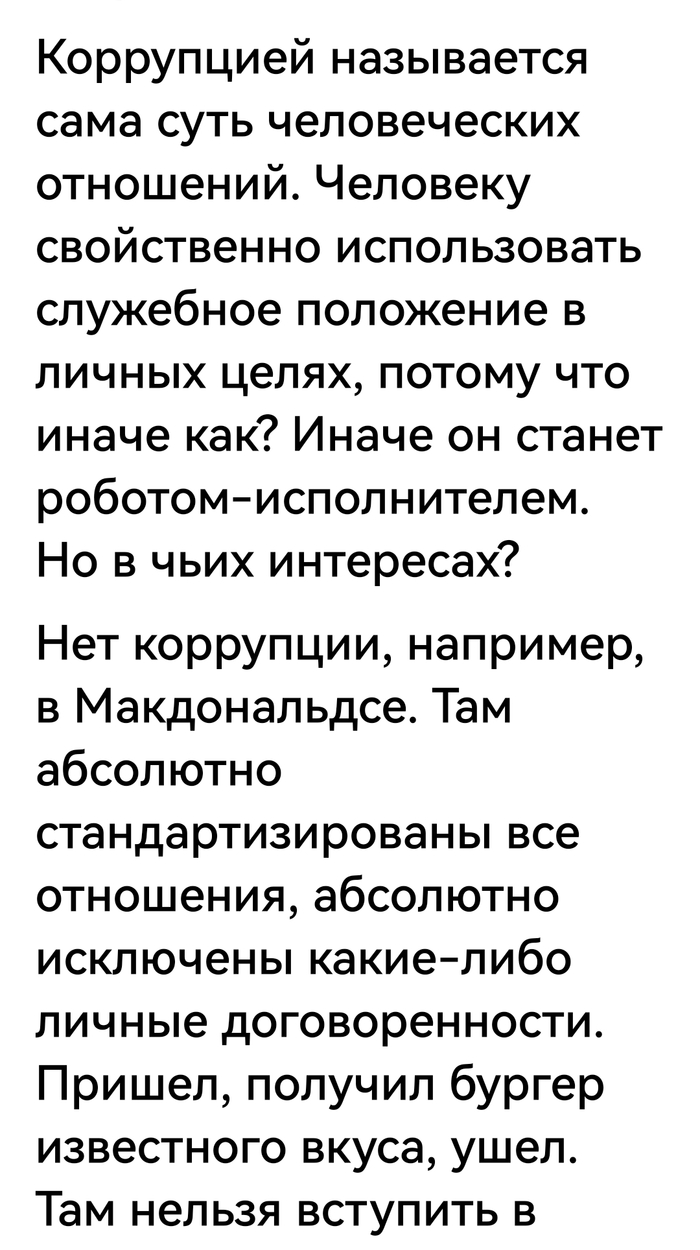В результате мы получаем общество, в котором человек боится потерять работу больше, чем потерять себя. Где жизнь превращается в бесконечную гонку без финиша. Где ценность человека определяется не его человечностью, а его полезностью для капитала.