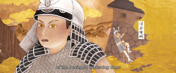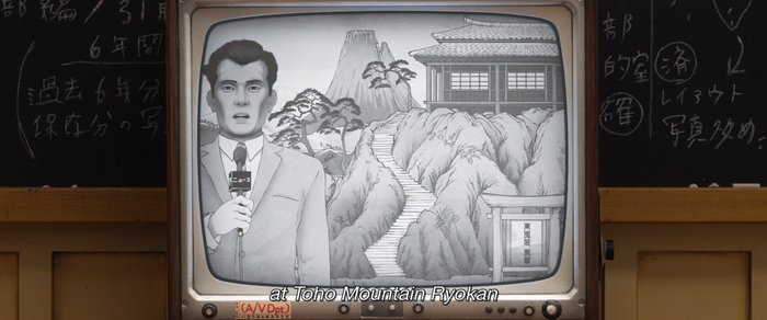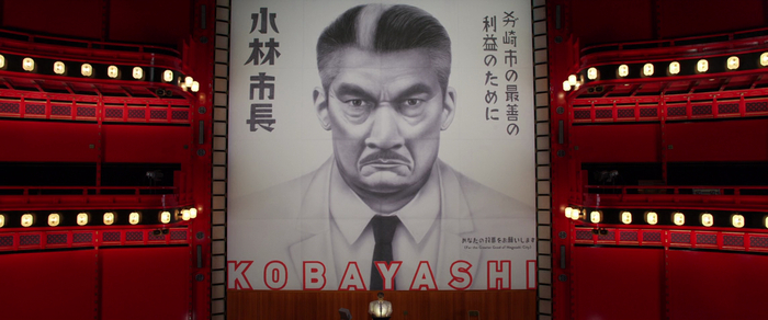 Помимо этой сцены, нам показывают еще карточку. Это яркая двухцветная визитка Луиса Каррутерса.
