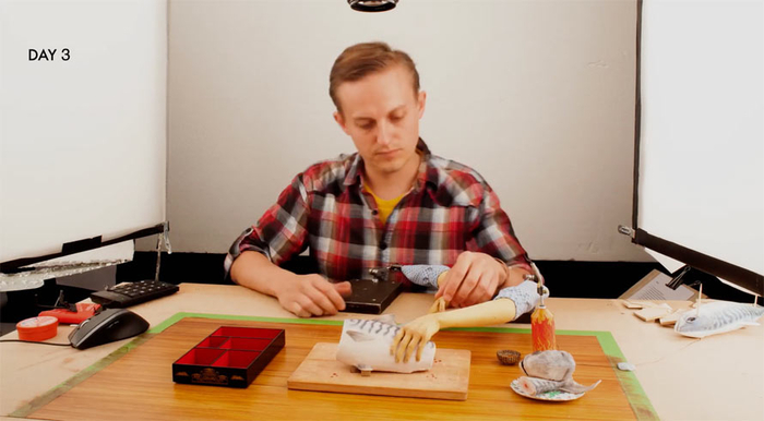 Тоже используется рельефная бумага, а вот буквы — точно не рельефные (мы видим отсутствие оттиска на задней стороне, когда он вынимает визитку)